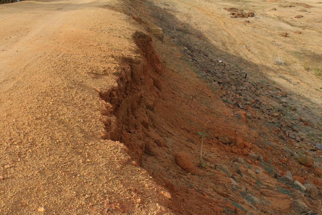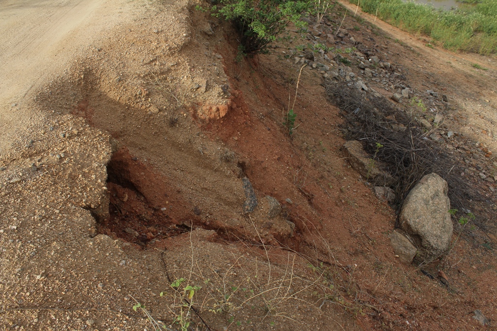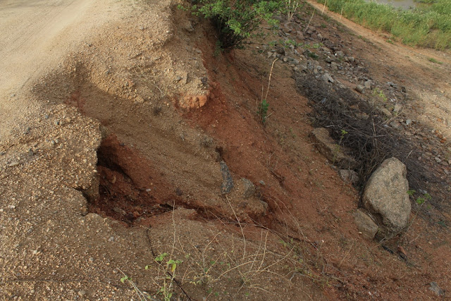 As avarias, que antes do início das chuvas eram vistas de forma discretas, agora já são visíveis para motoristas e motociclistas que trafegam por cima da parede de contenção do manancial.