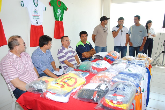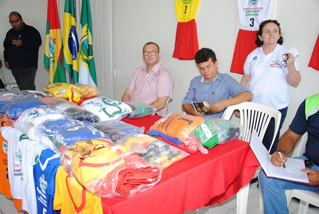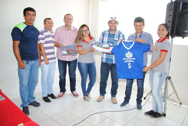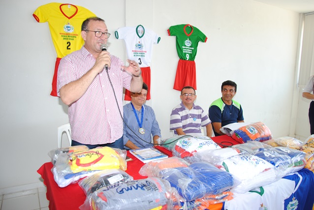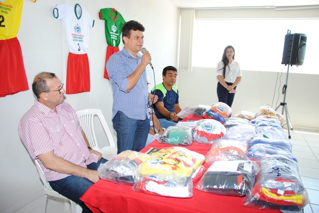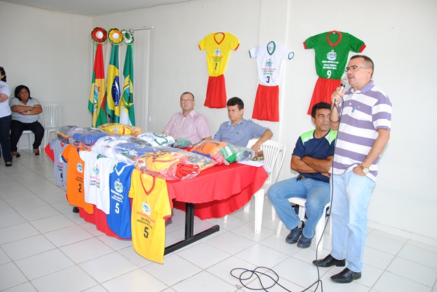 Na ocasião, o prefeito Juninho Alves e o vice Paulo Brasil entregaram o kit que vem com um conjunto de 12 camisas, calções e pares de meião e foram produzidos de acordo com a cor de cada escola.