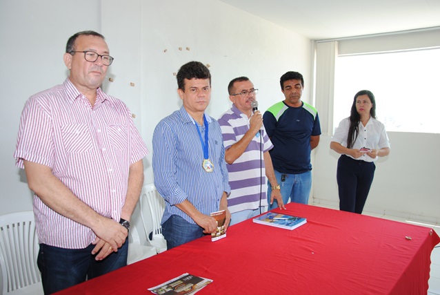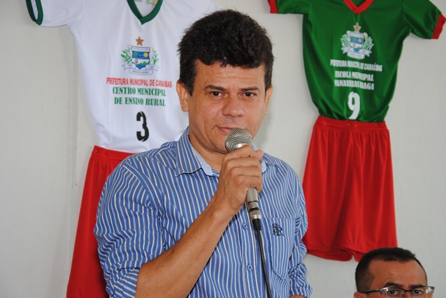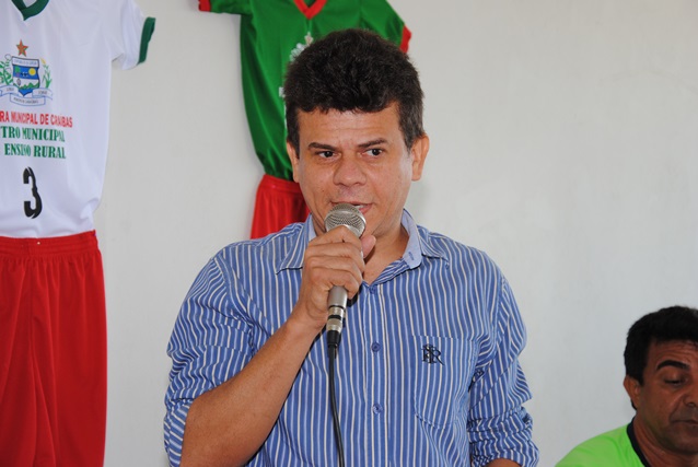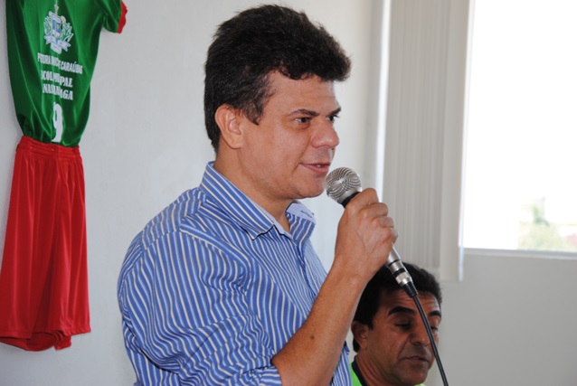 Fizeram parte da mesa na solenidade de entrega dos uniformes de futebol, o prefeito Juninho Alves, o vice Prefeito Paulo de Paiva Brasil, o secretário de educação Francisco Antônio da Silva e subsecretário de Esportes, Carlos Alves.
