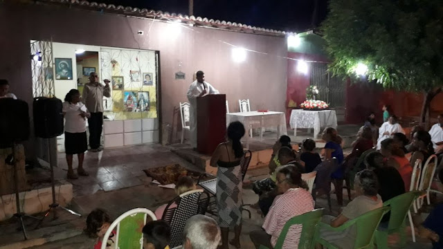 Na noite desta terça-feira (08), vários fiéis participaram da Missa da Comunidade, realizada pelo Padre Glaúdio Fernandes na rua da Escola Maria Silvia no bairro Leandro Bezerra em Caraúbas.