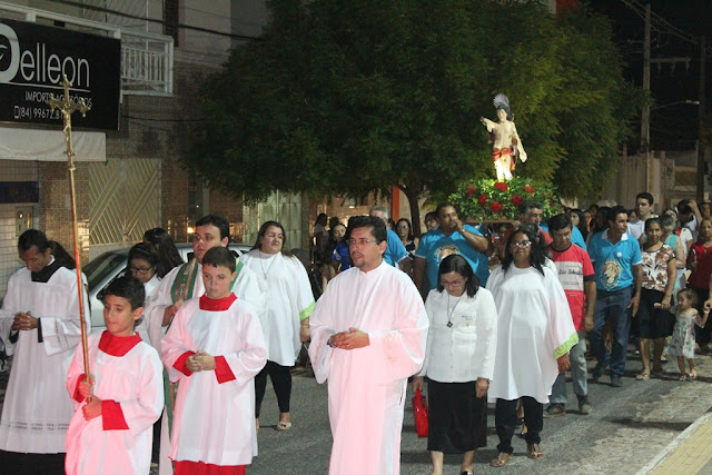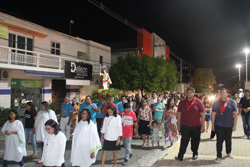 Após o encerramento, ainda foi realizada uma procissão com a imagem de São Sebastião, saindo da Igreja Matriz até o Santuário Sagrado Coração de Jesus, local onde a imagem do santo padroeiro permanecerá até a noite desta segunda para as atividades do Terço dos Homens.