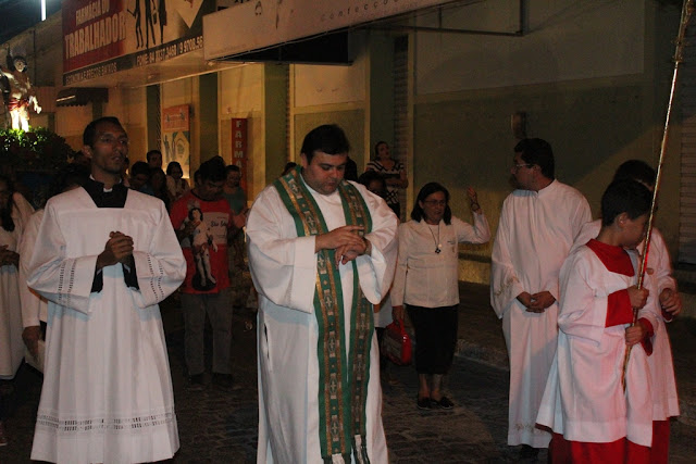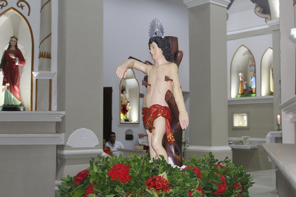 Após o Terço dos Homens, procissão com a imagem de São Sebastião saindo do Santuário Sagrado Coração de Jesus para a Capela de Nossa Senhora da Conceição.